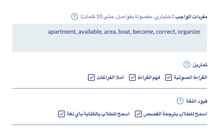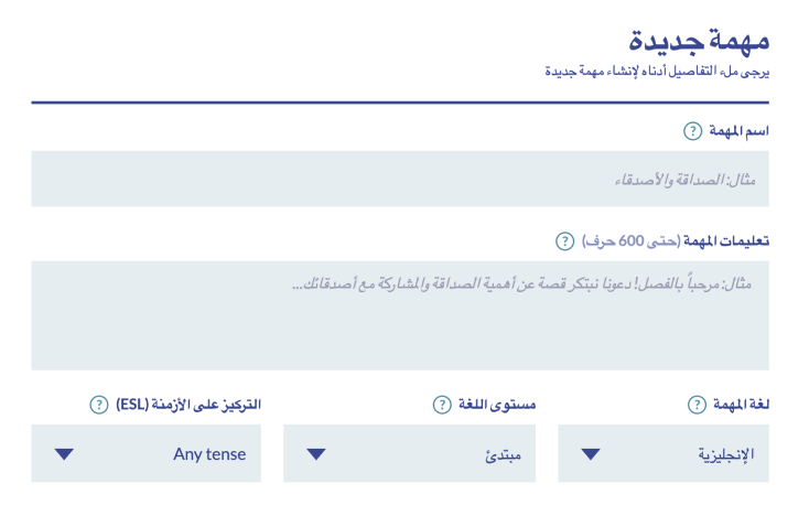يمكن للمعلمين إنشاء مهام وتمارين وقصص شخصية بسهولة وبدون الحاجة لمعرفة تقنية. تدعم المنصة العربية والإنجليزية والعبرية والروسية ولغات أخرى.